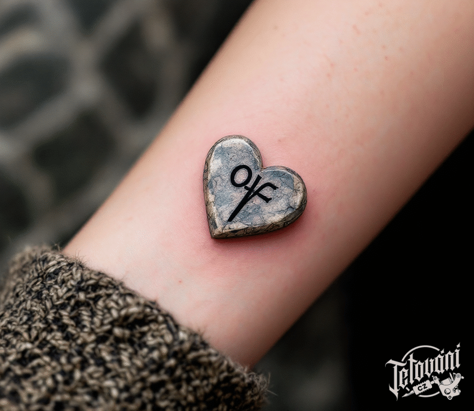 Tetování srdce s runou lásky na předloktí