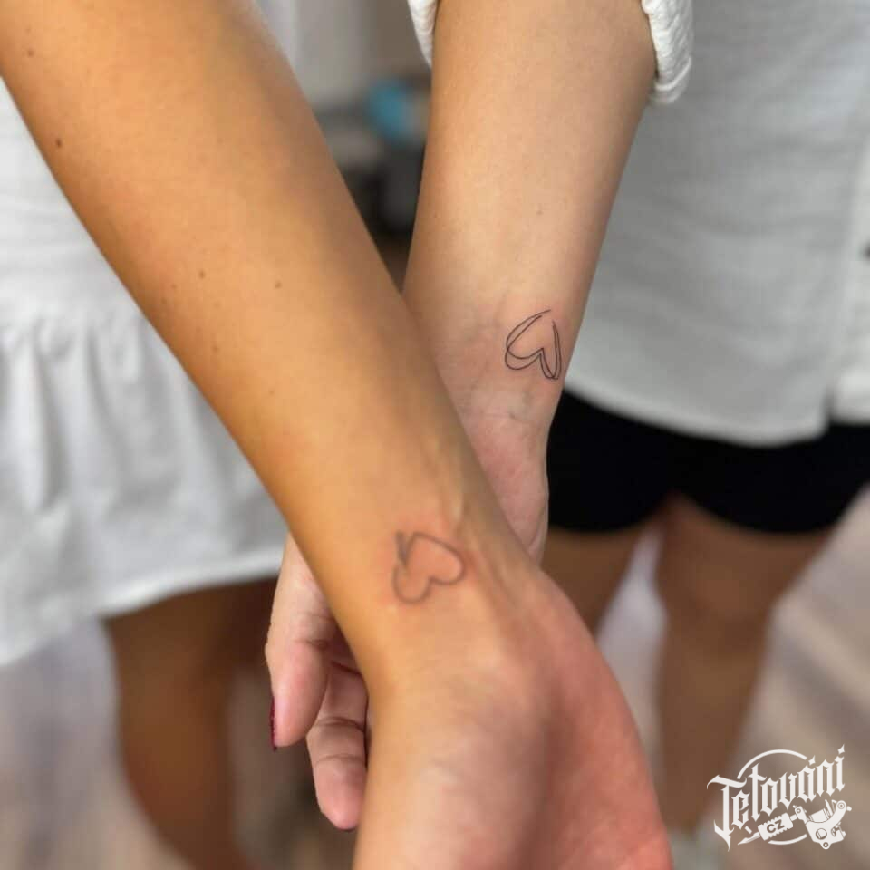Tetování srdce, společná tetování, pro setry, pro kamarádky na zápěstí