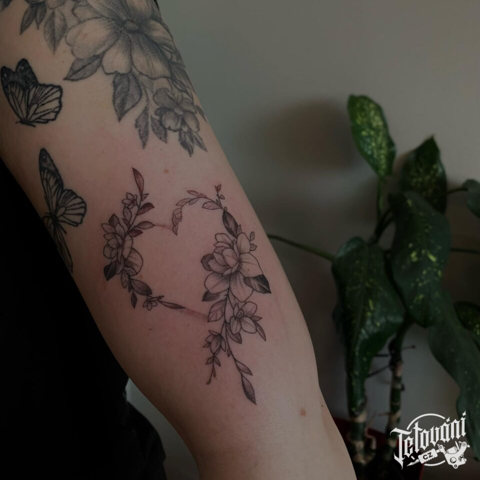 Tetování srdce z květin ...