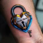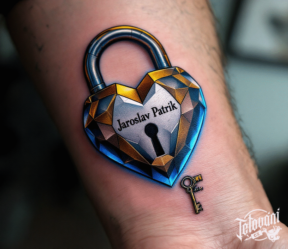 Tetování srdce, zámek a klíč, srdce se jménem na předloktí