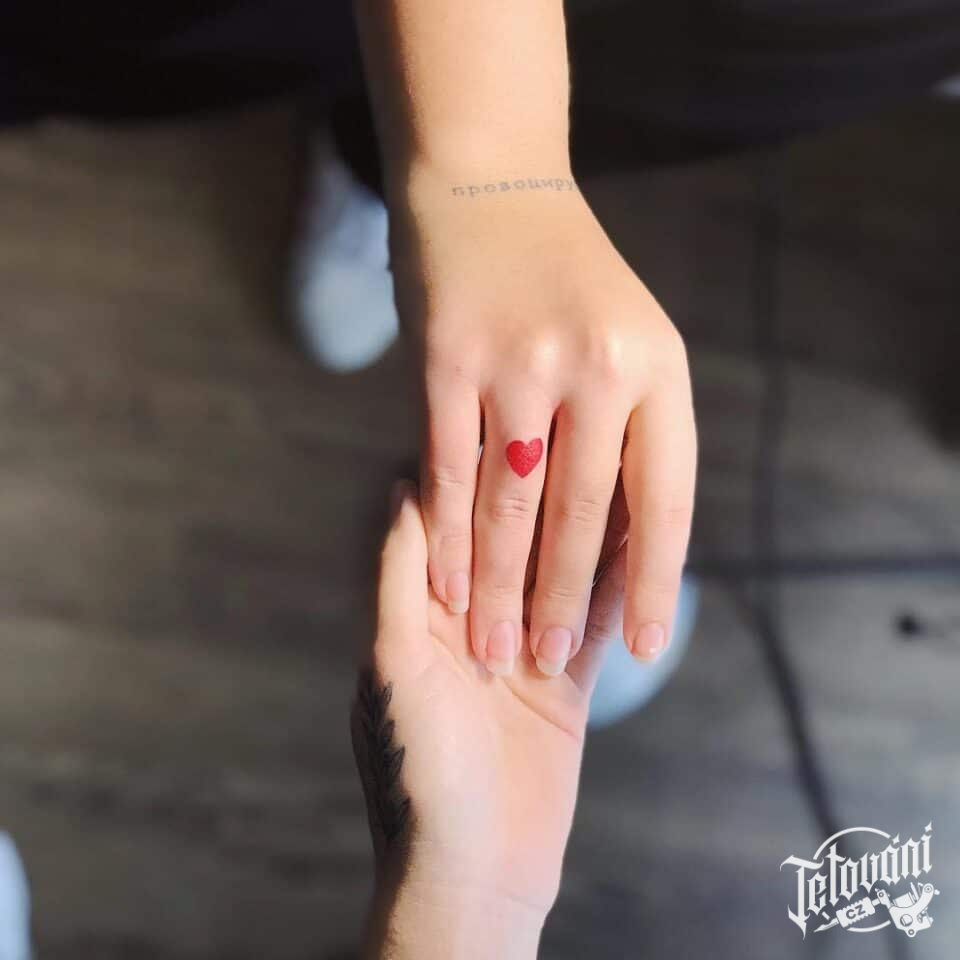Tetování srdíčko na prstu