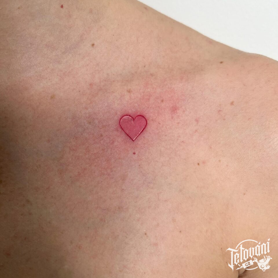 Tetování srdíčko pod klíční kostí