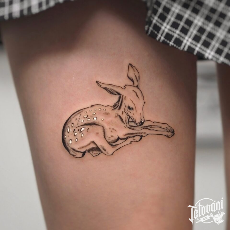 Tetování srnka na stehno