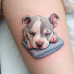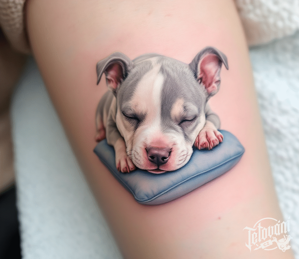 Tetování štěně staffbulla, zvíře, pes na rameno