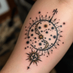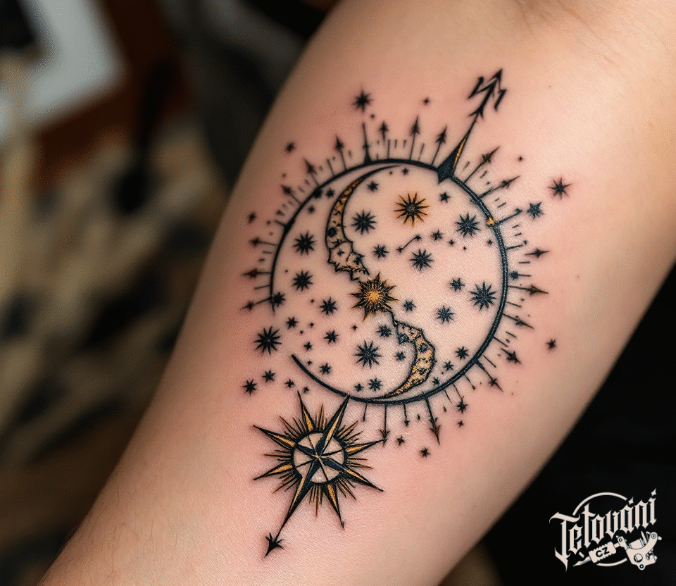 Tetování střelec, souhvězdí, měsíc na předloktí