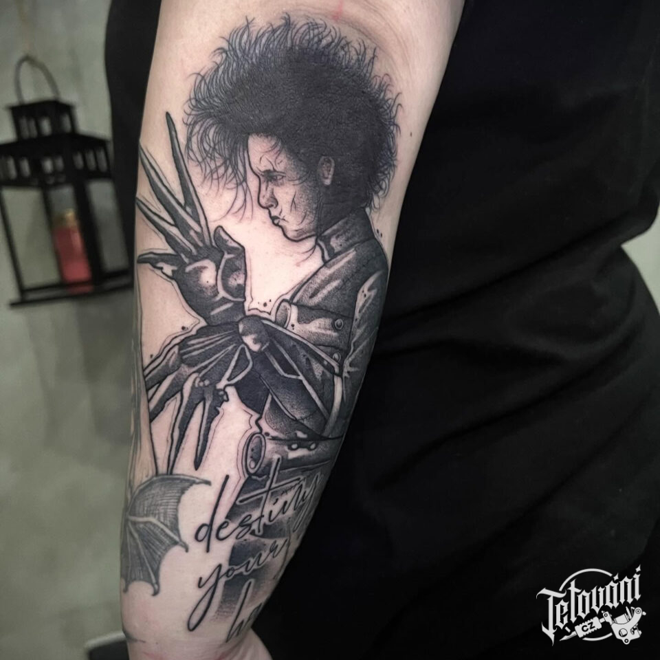 Tetování Střihoruký Edward z filmů a pohádek na loket