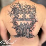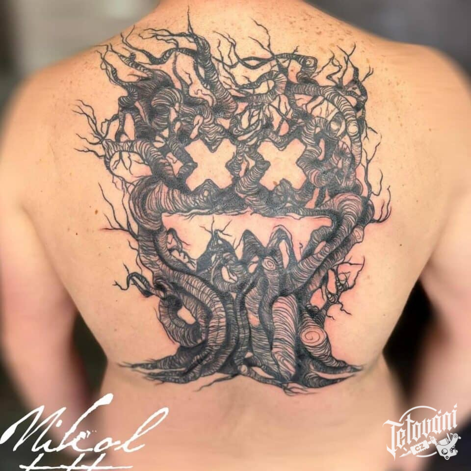 Tetování strom, hudba na zádech