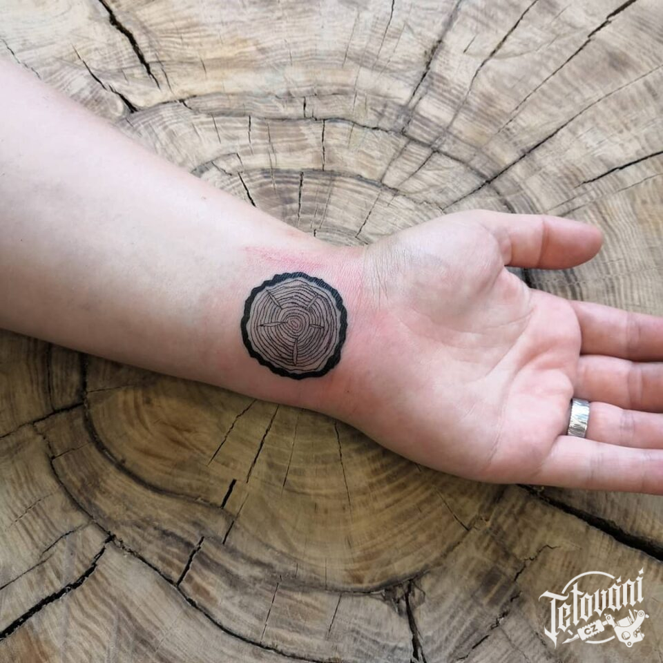 Tetování strom, letokruhy na zápěstí