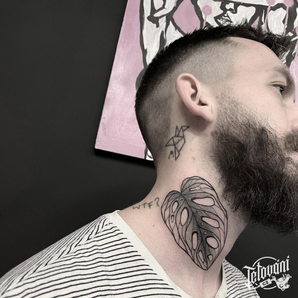 Tetování strom, list na krku