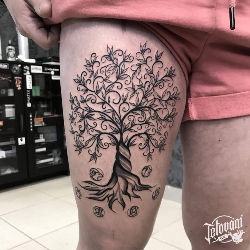 Tetování strom na stehně
