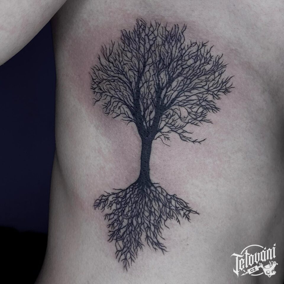 Tetování strom na žebra