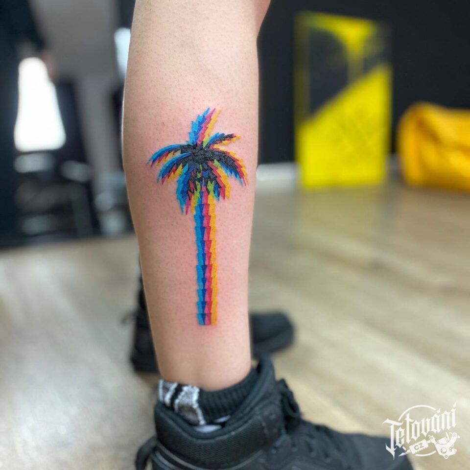 Tetování strom, palma na lýtku