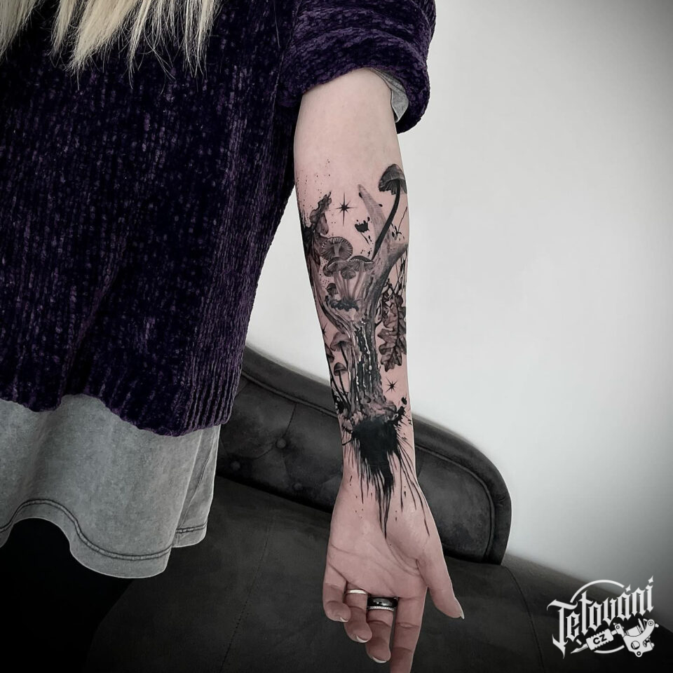 Tetování strom s houbami na předloktí