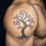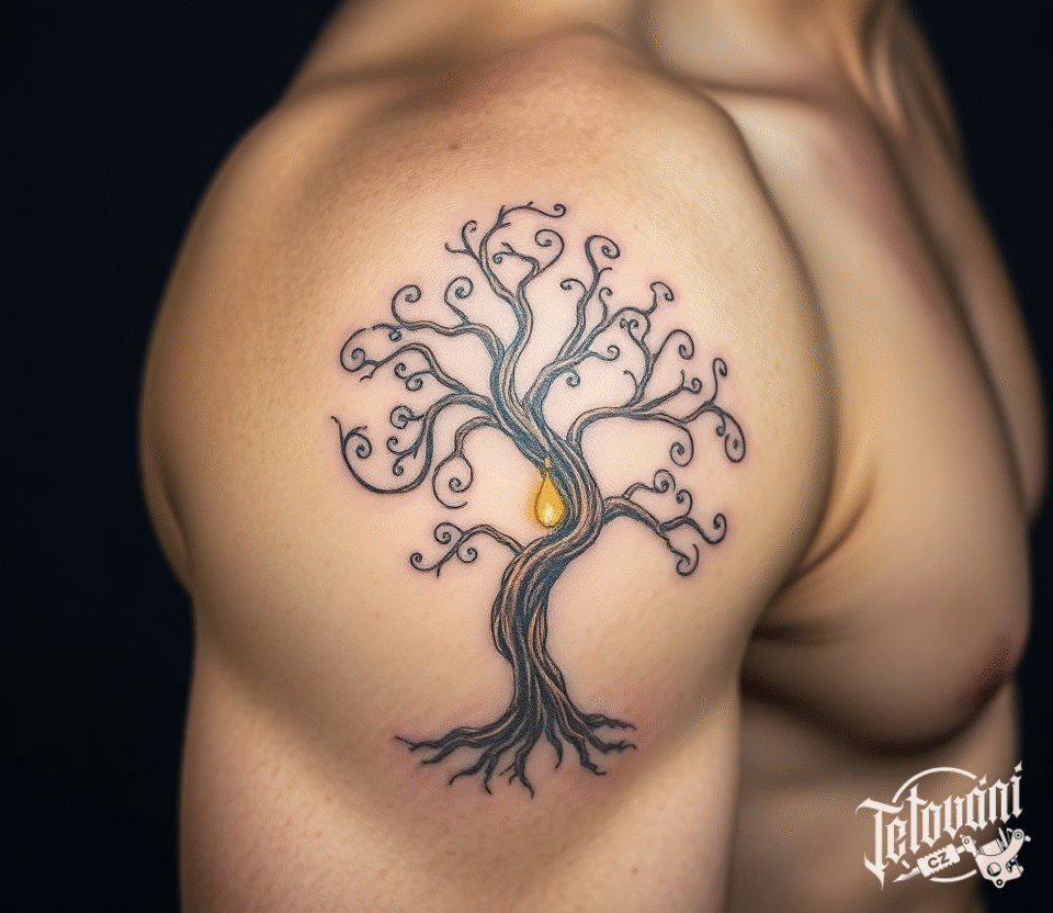 Tetování strom, strom rodiny a ornamenty na rameno