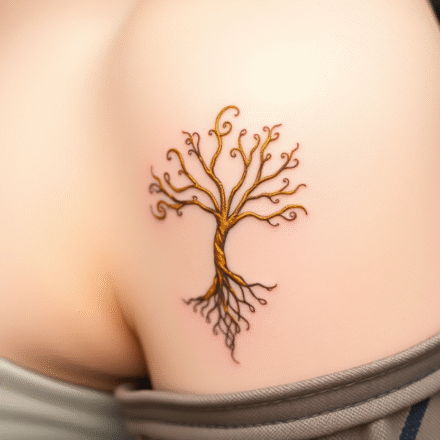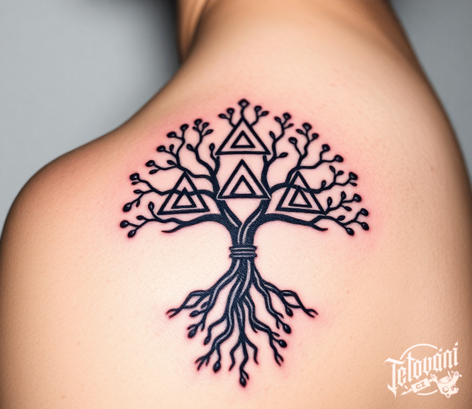 Tetování strom, strom rodiny a tvary, trojúhelníky na záda