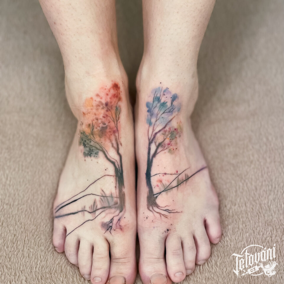 Tetování strom v ročním období na nárty