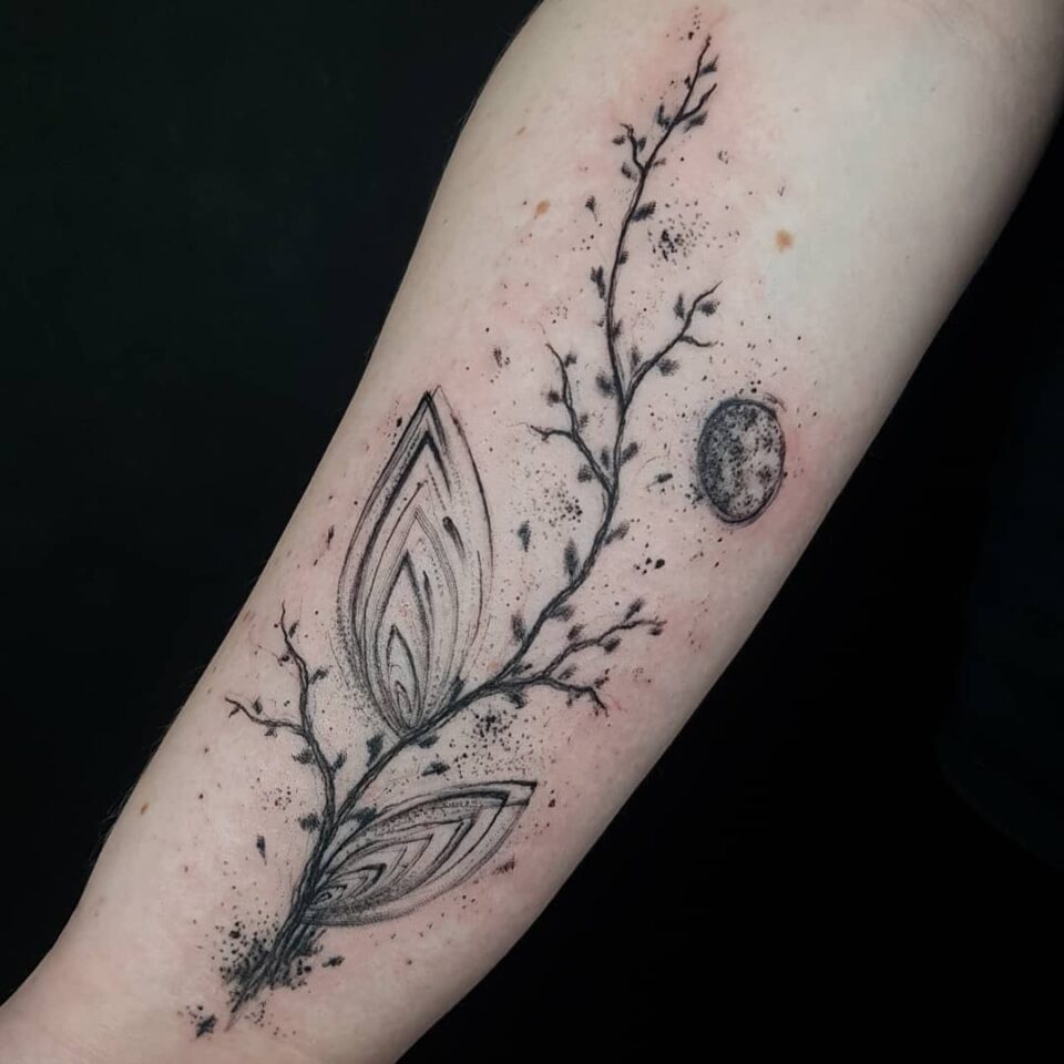 Tetování strom, větvičky a Měsíc na předloktí