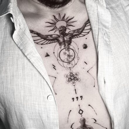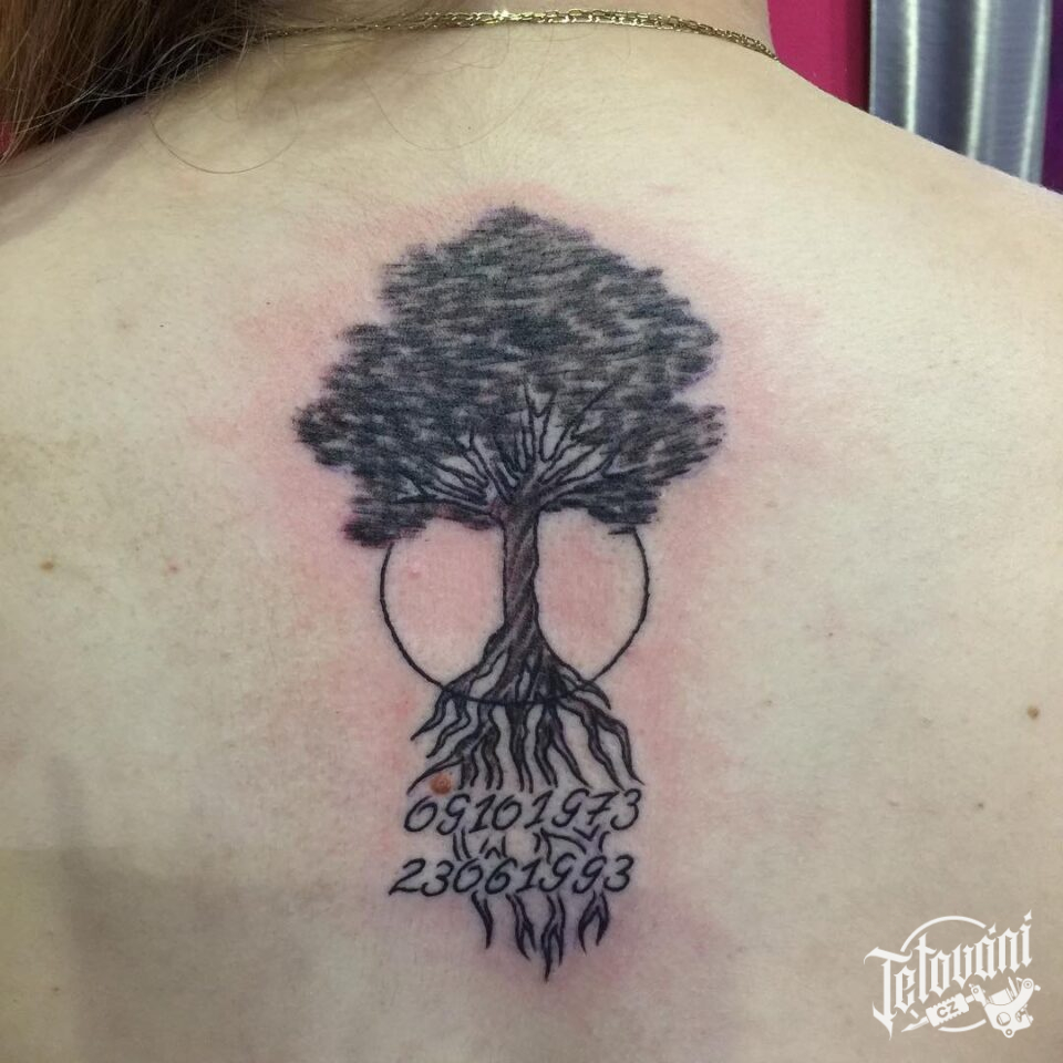 Tetování strom života s čísly na zádech