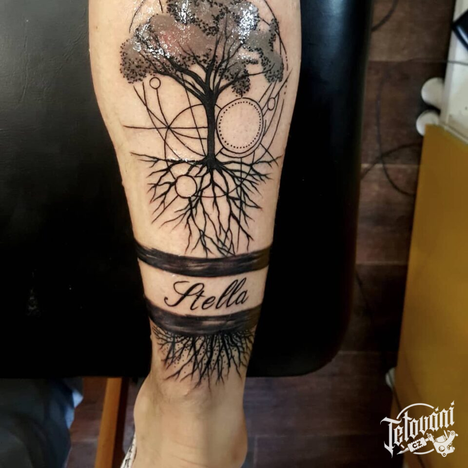 Tetování strom života se jménem na rameno