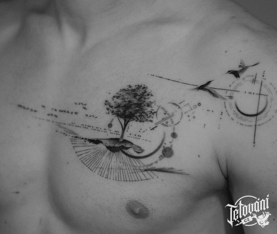 Tetování strom, znaky a symboly, tvary na prso
