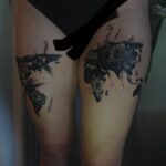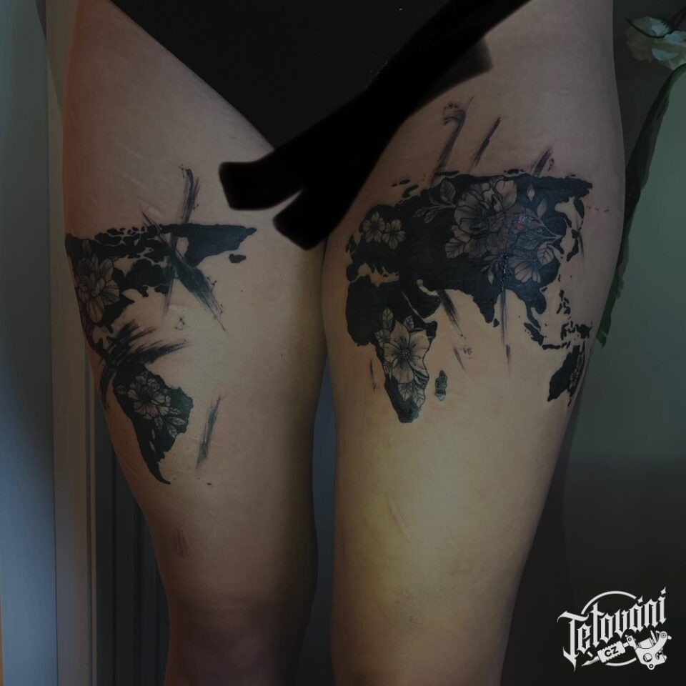 Tetování symbol cestování, květiny na stehna