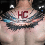 Tetování symbol hokeje HC Sparta Praha mezi lopatky