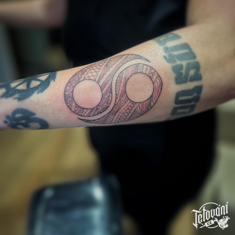 Tetování symbol jing-jang na předloktí