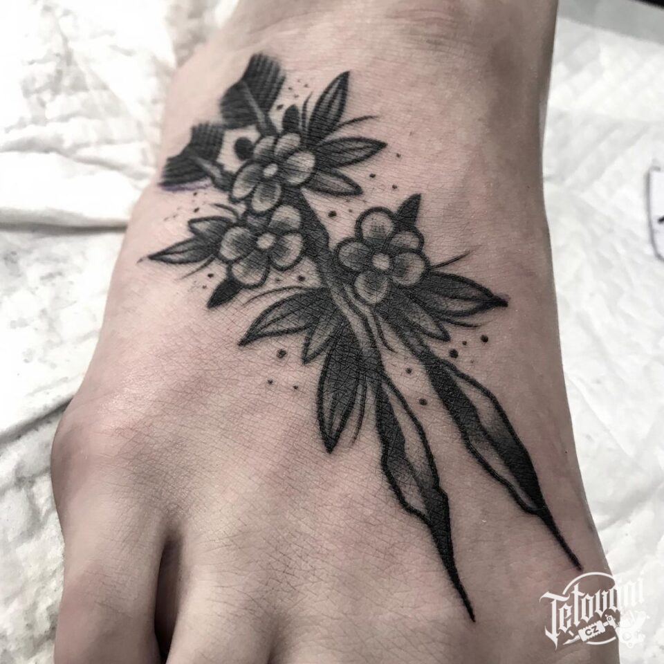 Tetování symbol květiny na nárt
