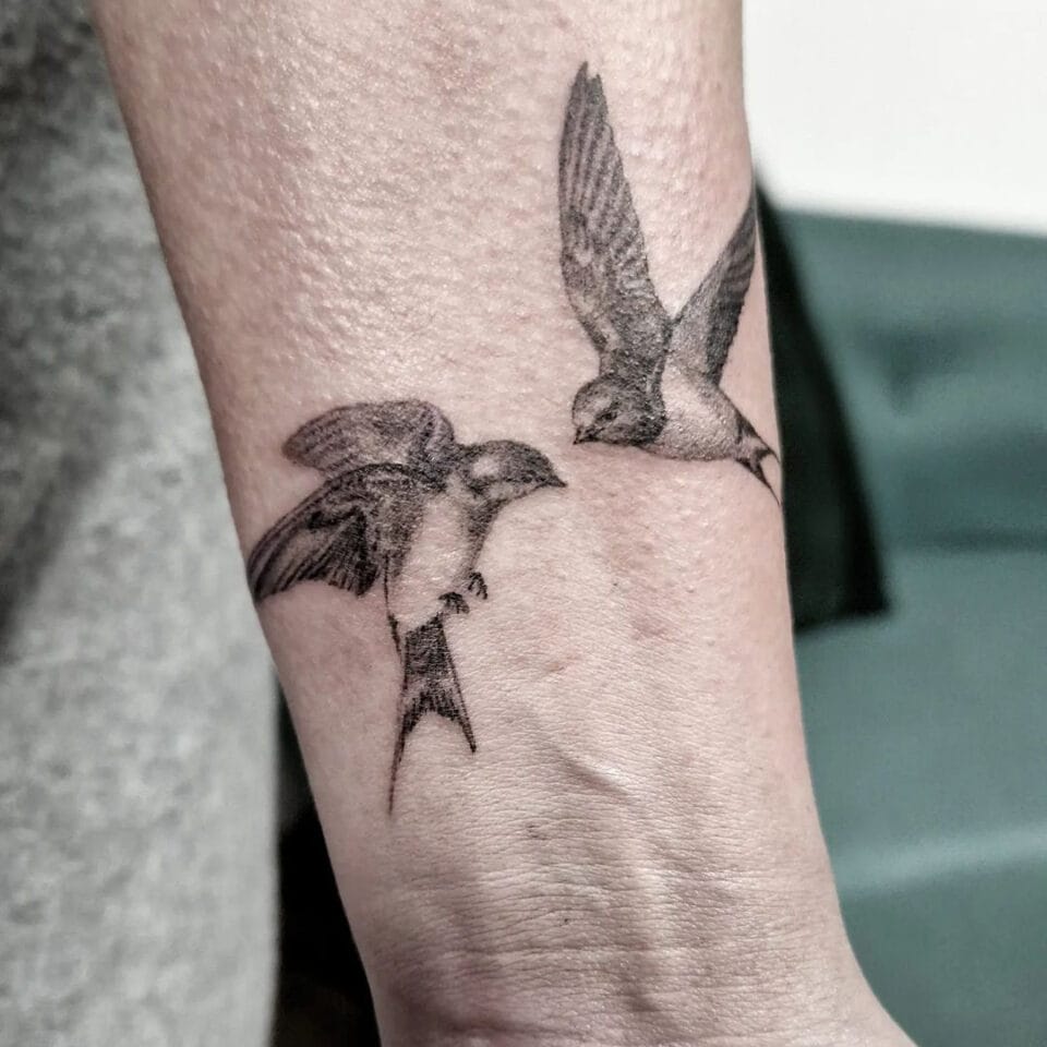 Tetování symbol lásky ptáci na předloktí