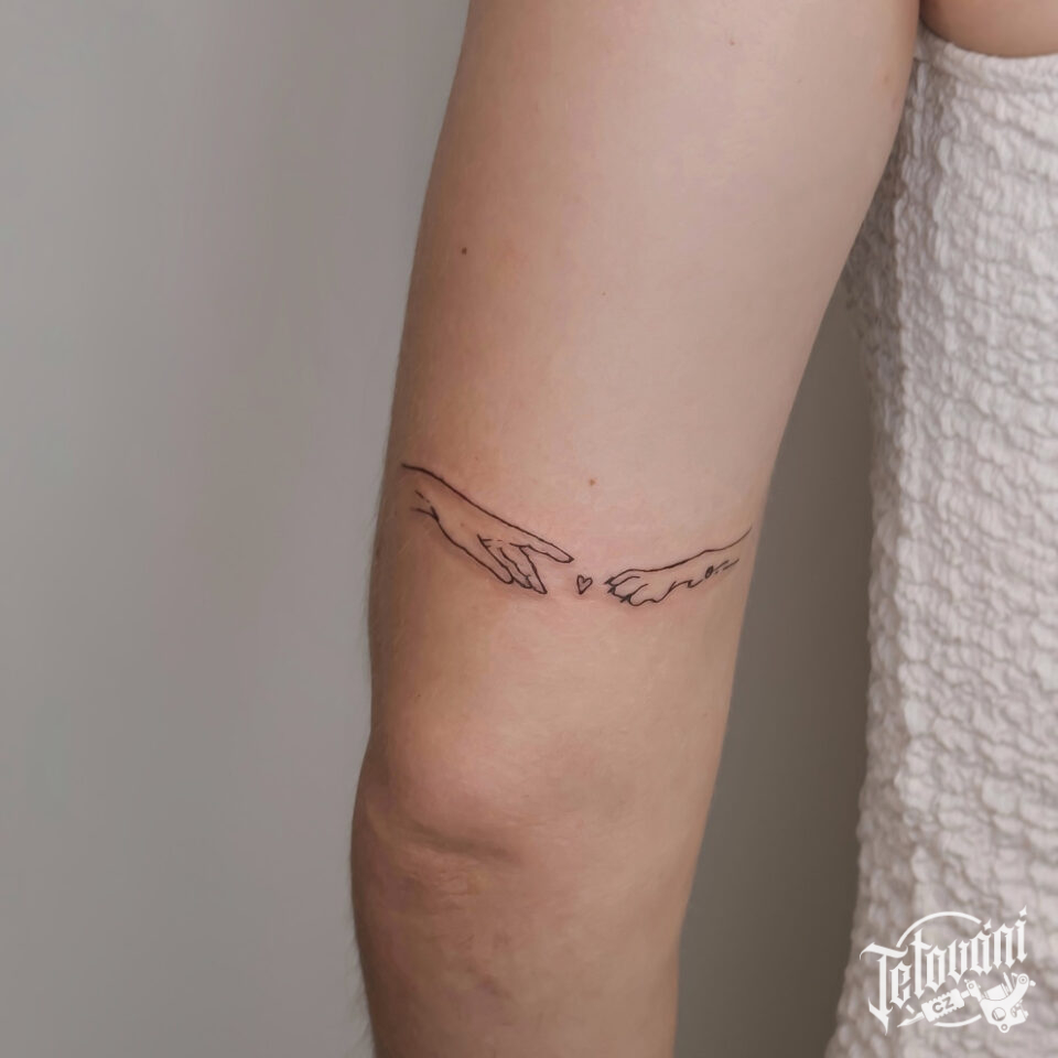 Tetování symbol lásky, ruka, srdíčko a psí tlapka na ruce