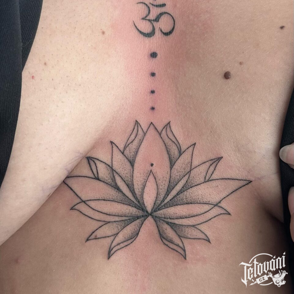 Tetování symbol , lotos květina mezi prsa