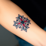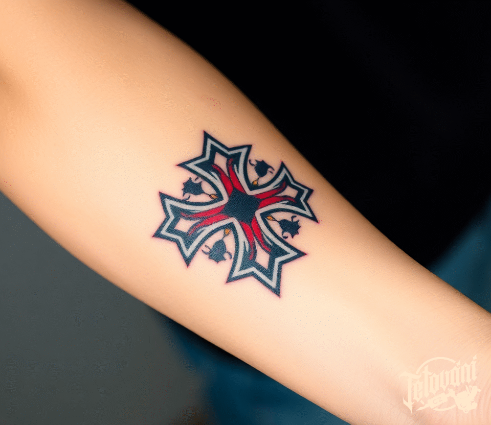 Tetování symbol maltézský kříž na předloktí