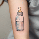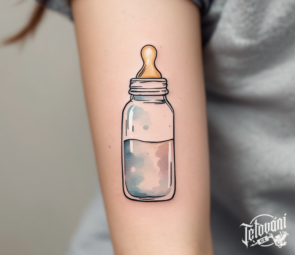 Tetování symbol mateřské lásky, dětská láhev na rameno