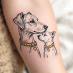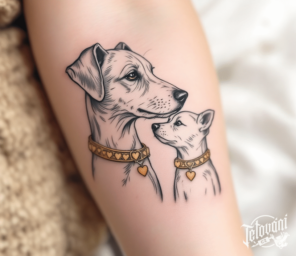 Tetování symbol mateřské lásky, pes a štěně na předloktí