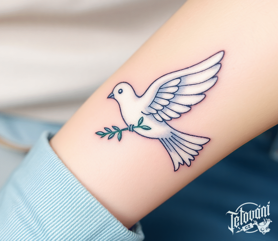 Tetování symbol naděje holubice na předloktí