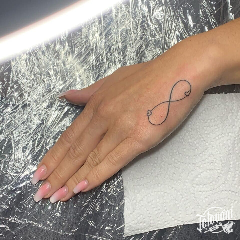 Tetování symbol nekonečno, ležatá osmička na hřbet ruky