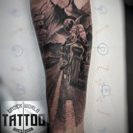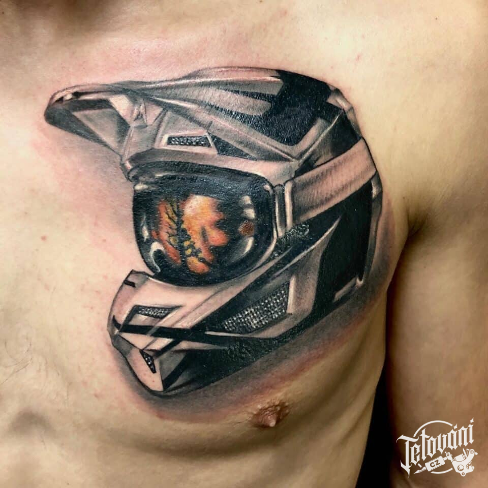 Tetování symbol ochrany motorkářská helma na hrudník, prso