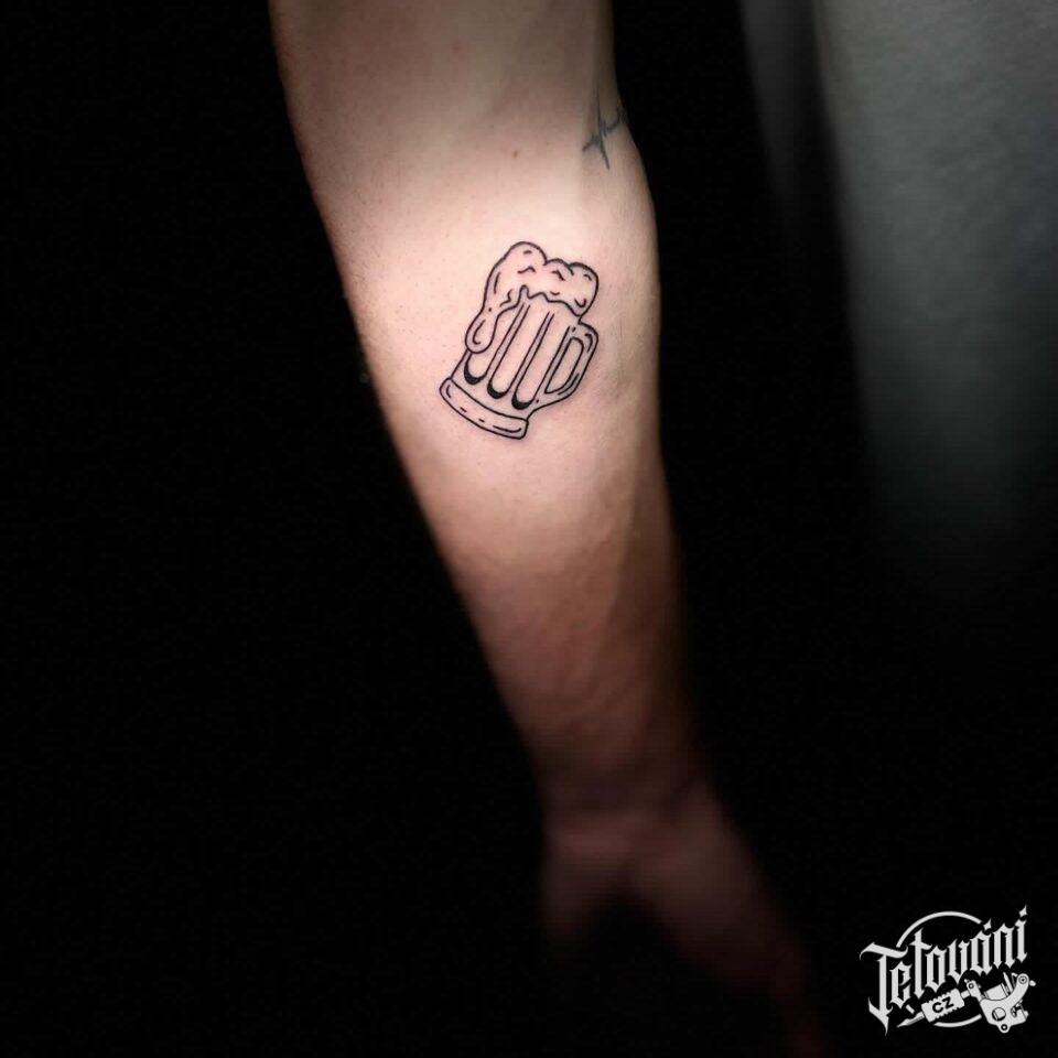 Tetování předměty, pivo na předloktí