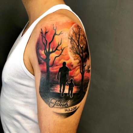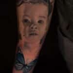 Tetování symbol rodina, portrét dítě, zvíře motýl na předloktí