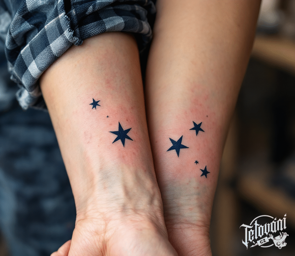 Tetování symbol rodiny a lásky otce a dítěte, hvězdy na předloktí
