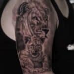 Tetování symbol rodiny lev s lvíčetem, zvířata na rameno