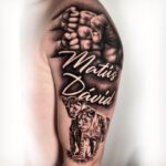 Tetování symbol rodiny, zvířata lvíčata, jména na rameno