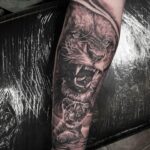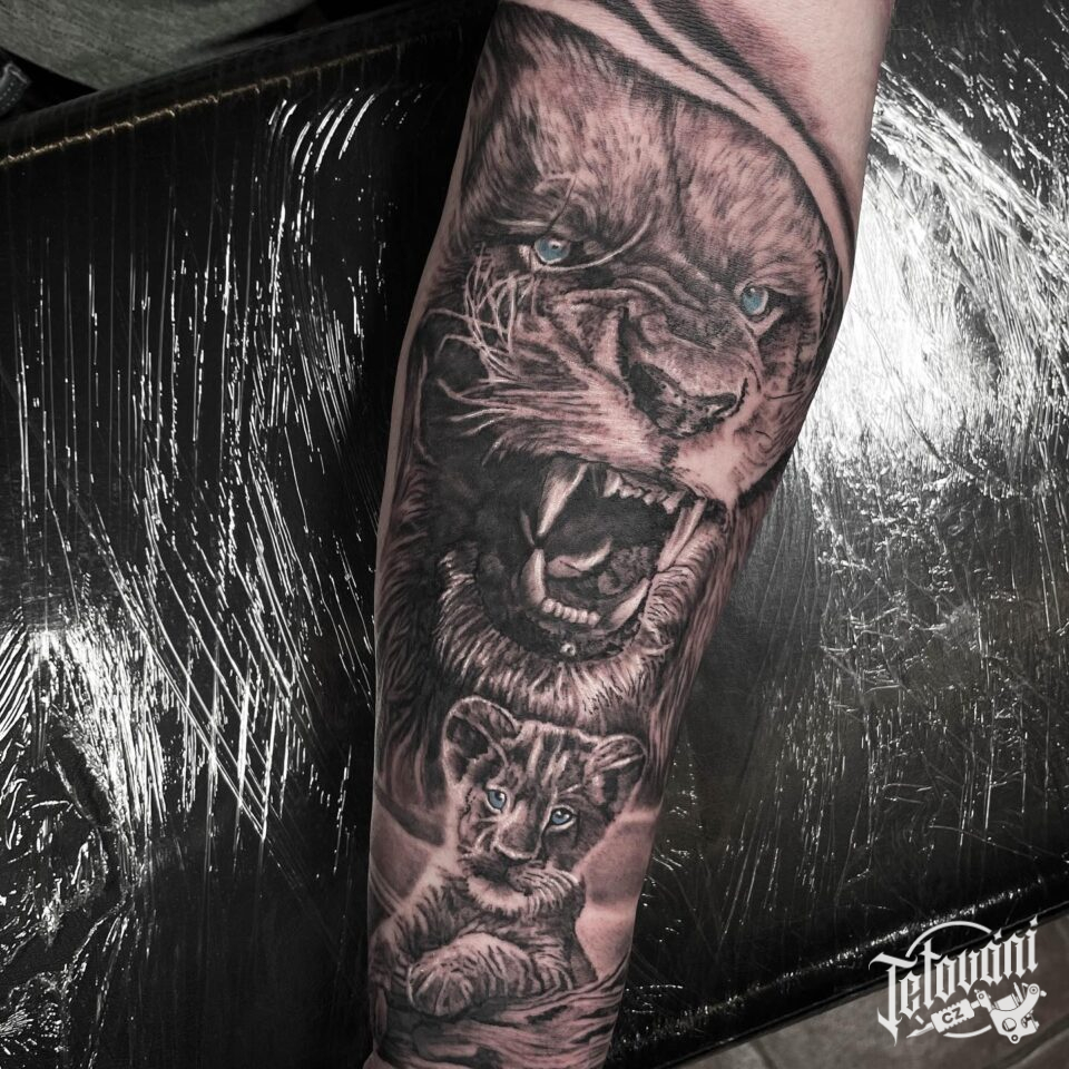 Tetování symbol rodiny zvířata lvice a lvíče na předloktí