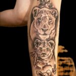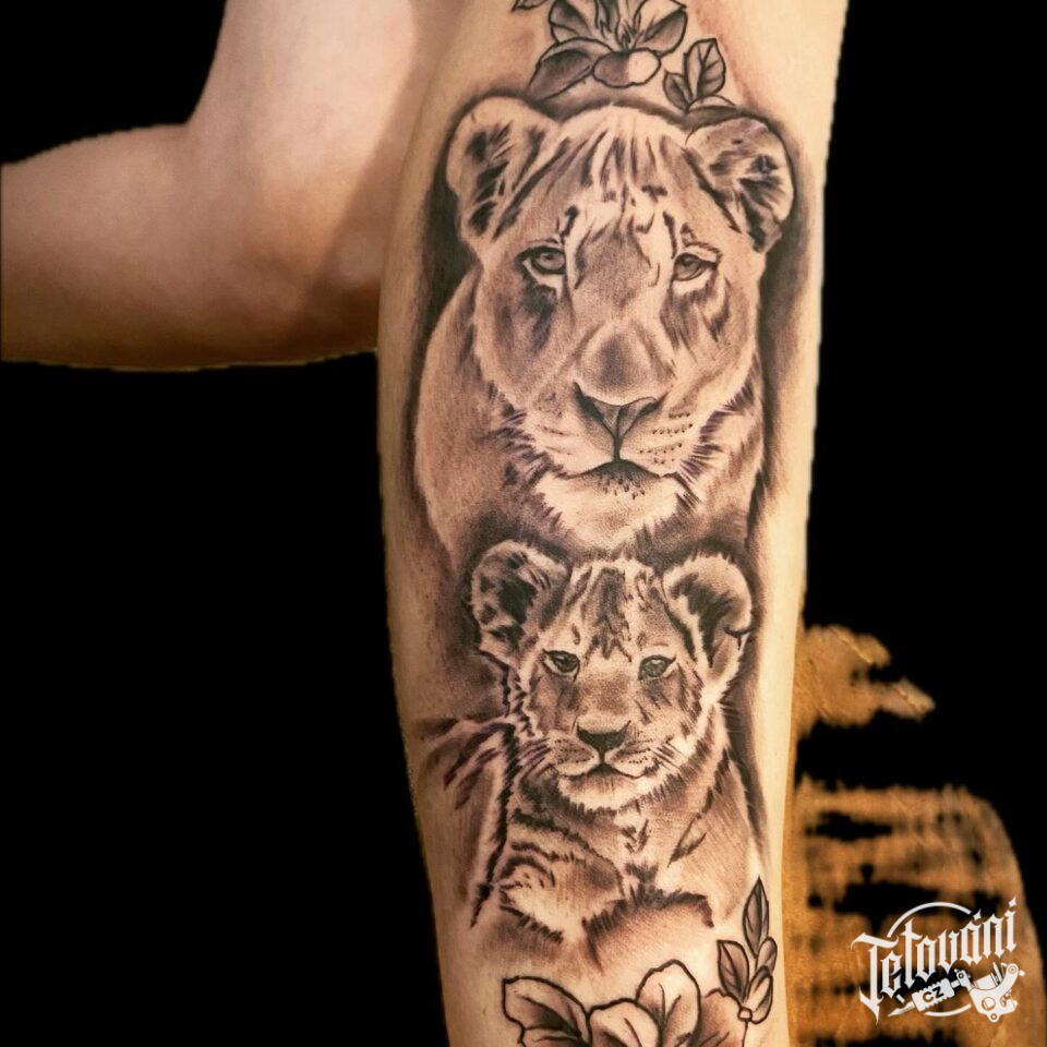 Tetování symbol rodiny zvířata lvice s lvíčetem na lýtko