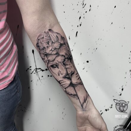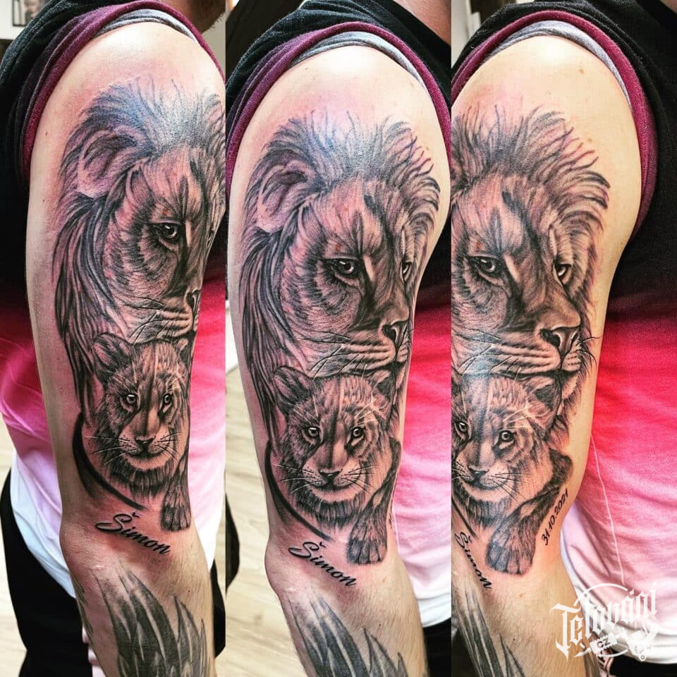 Tetování symbol rodiny, zvíře a znamení zvěrokruhu lev na rameno