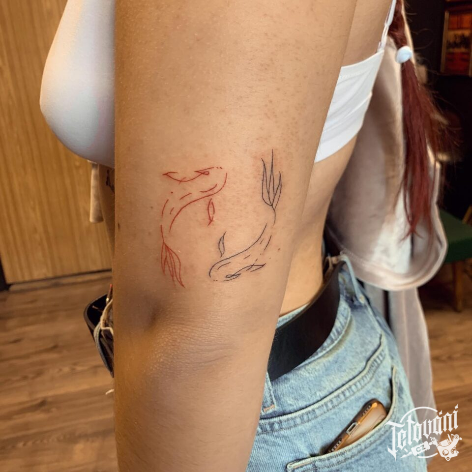 Tetování symbol ryby, jako jin a jang na rameno