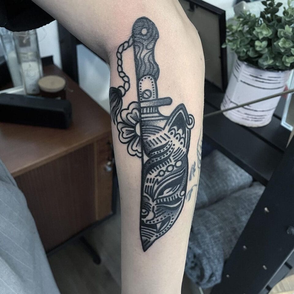 Tetování symbol síly nůž na předloktí