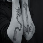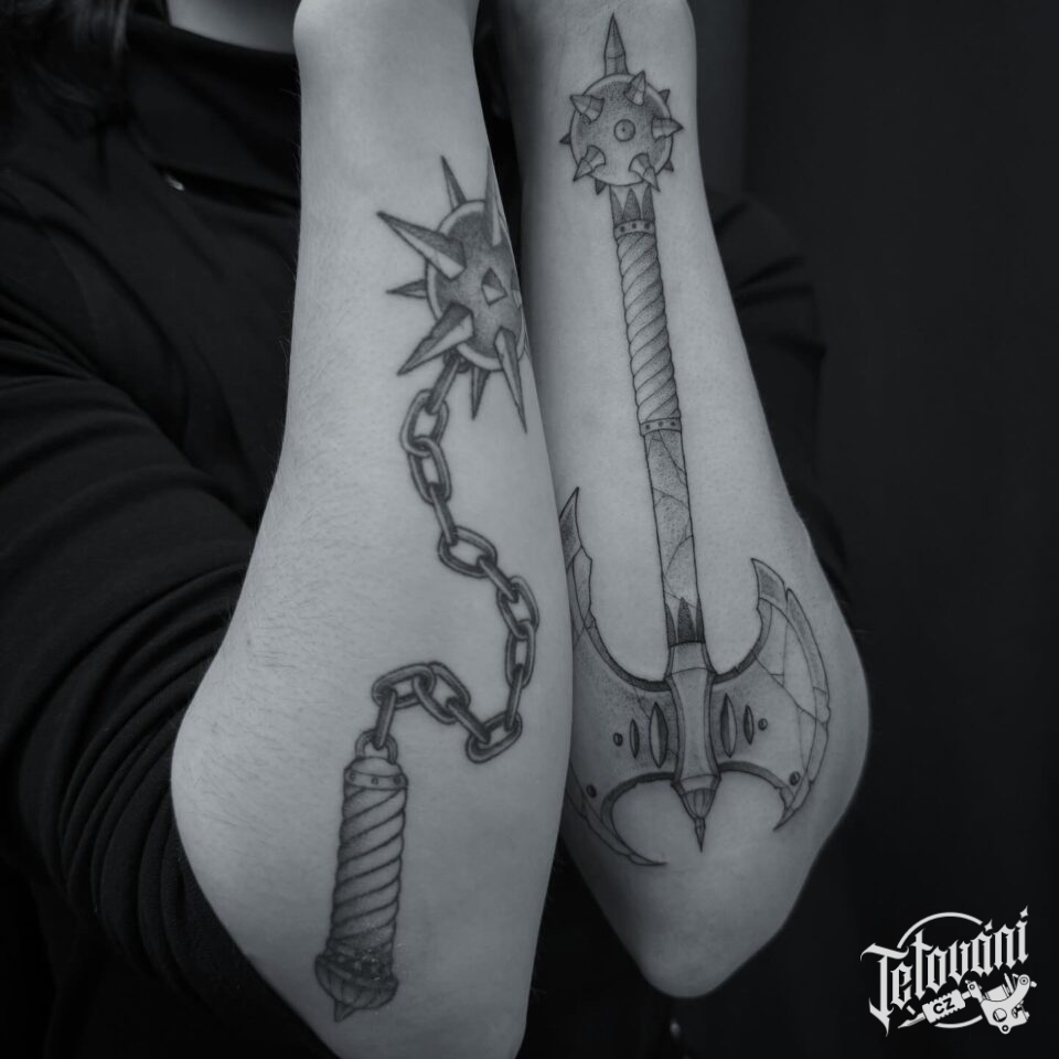 Tetování symbol síly, zbraně na předloktí