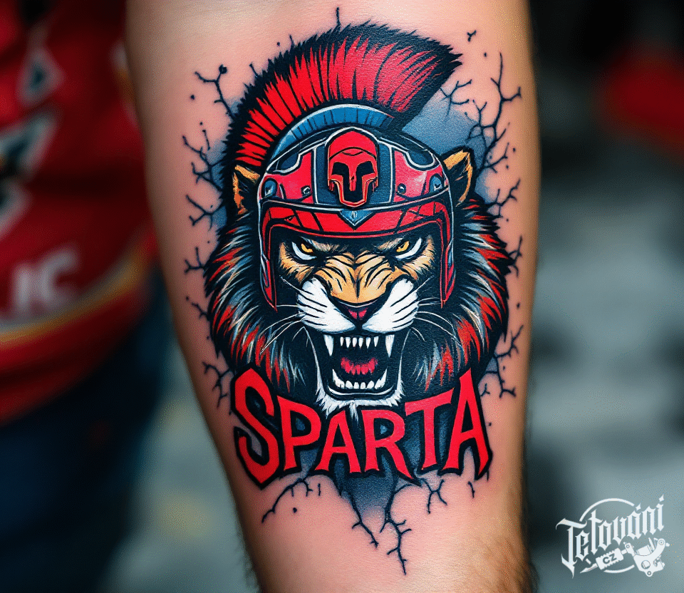 Tetování symbol Sparta Praha, zvířata lev na ruku