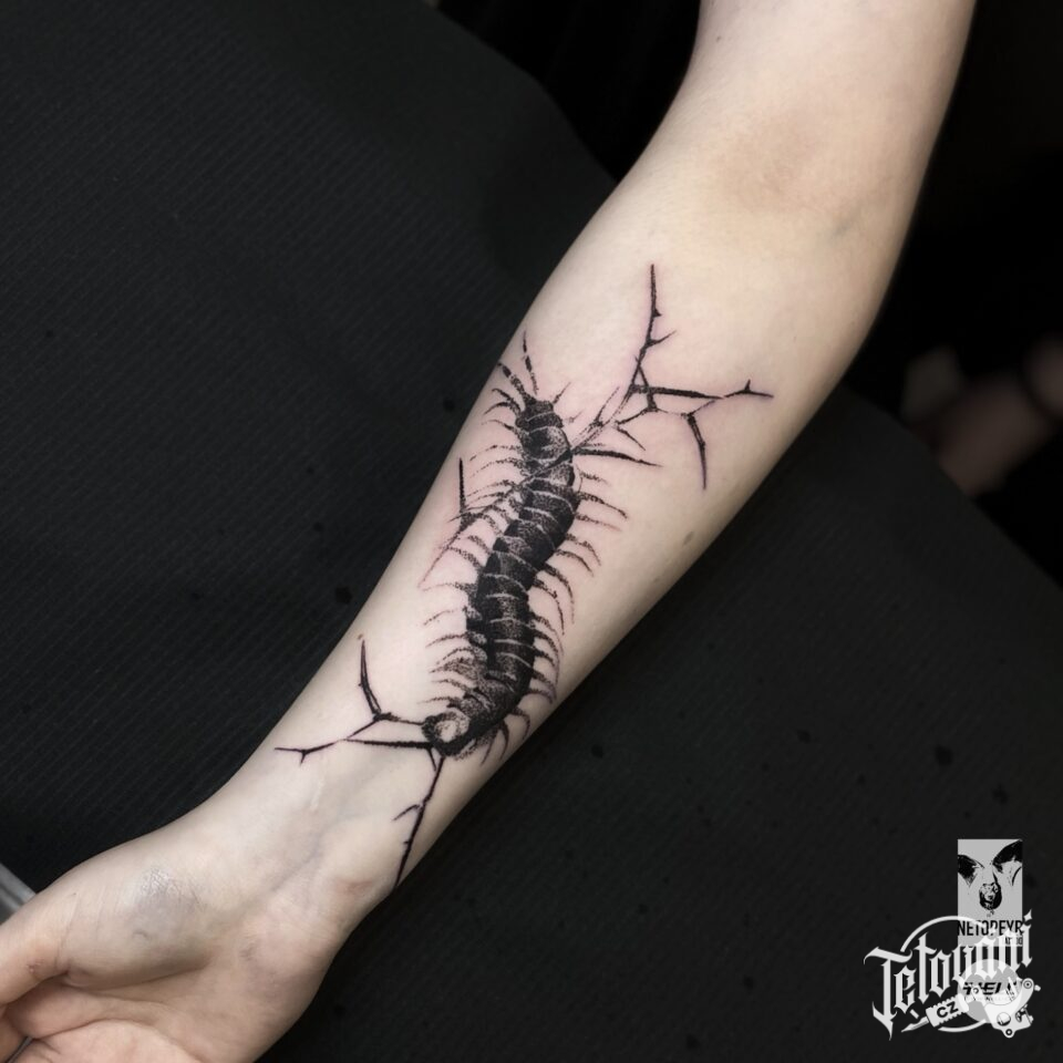 Tetování symbol, stonožka, zvíře na předloktí